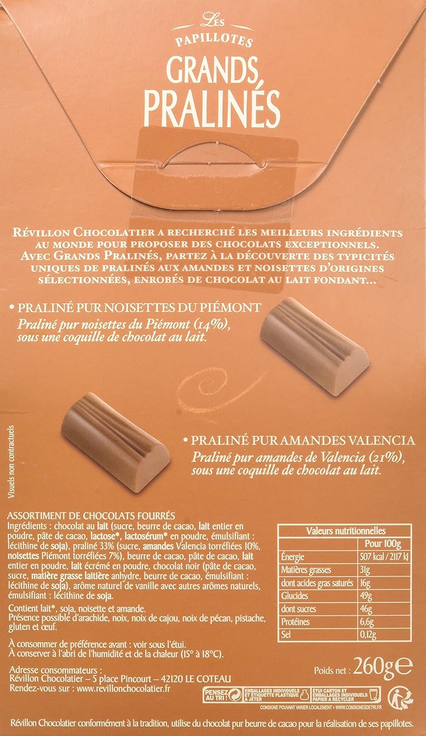 -Alliance de cacao et déclats croustillants en robe de chocolat noir -Praliné aux éclats damandes nappé de chocolat noir et parsemé déclats damandes croquants -Fraicheur cacaotée dévoilée sous un chocolat noir croquant Sélectionnées avec. REVILLON CHOCOLATIER Les papillotes Voie Lactée lait sachet 420g--Afficher le prix. Contient lait soja amande noisette blé et orge.